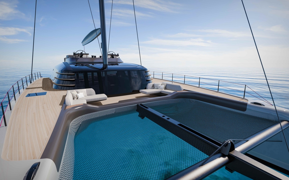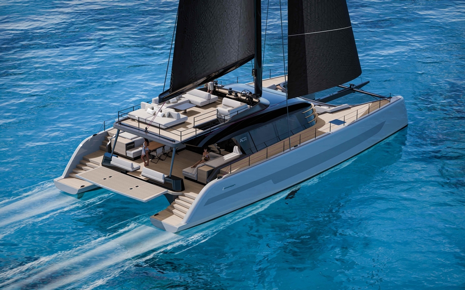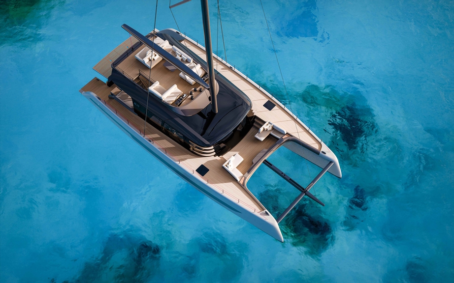 The 72ft cruising cat includes an expansive saloon unmatched in large cruising catamarans, an “aft beach” stretching the full 10-metres beam, and a forward cockpit to enjoy private relaxation. A careful modelling process allowed for 360-degree visualization from the saloon seats, confirming pleasant and natural light in all areas to make the yacht inviting and atmospheric. Indoor/outdoor living is delivered in true Italian fashion through the broadest possible 3-section saloon doors. A reimagined flybridge allows the helmsman, family, and guests to engage in the sailing and social time altogether.